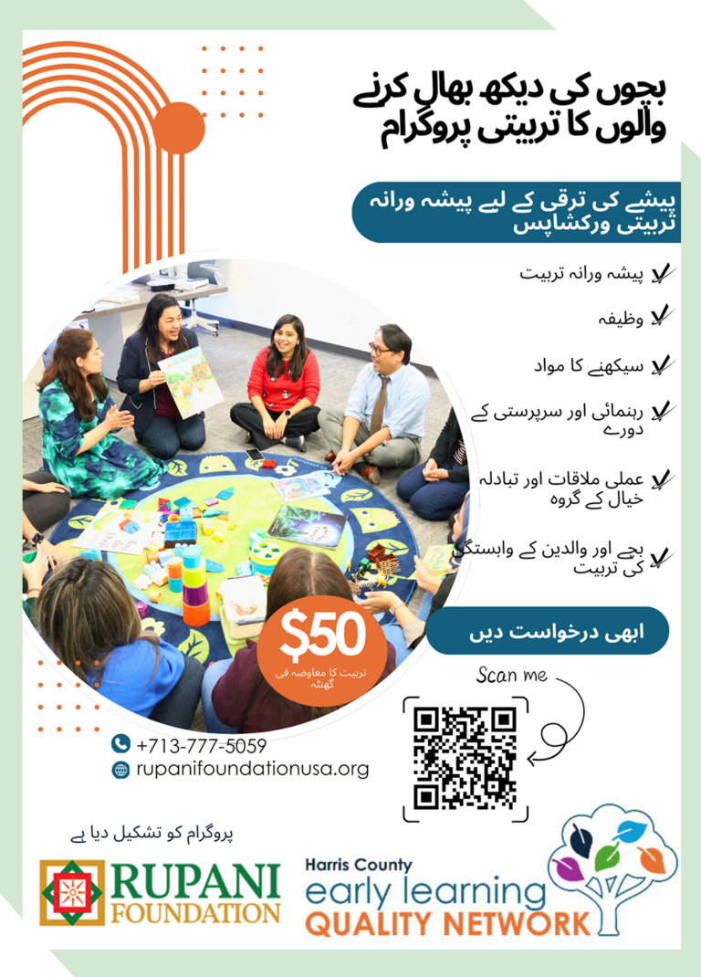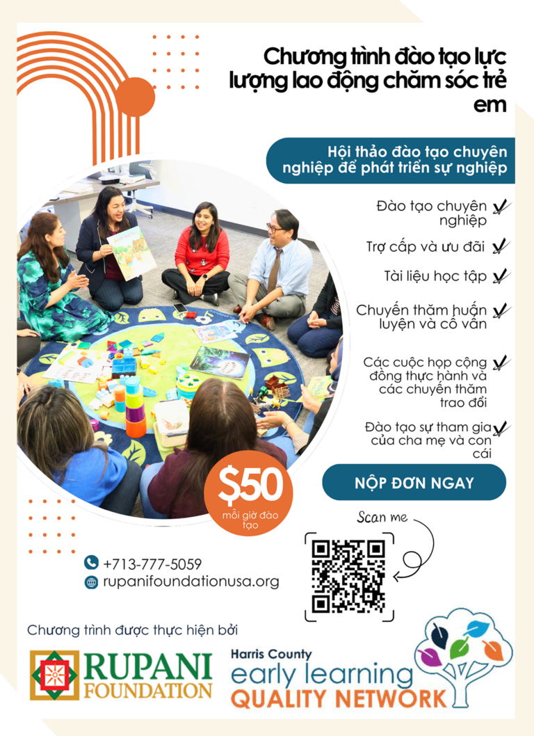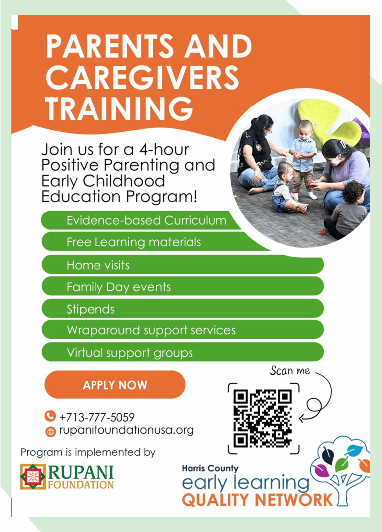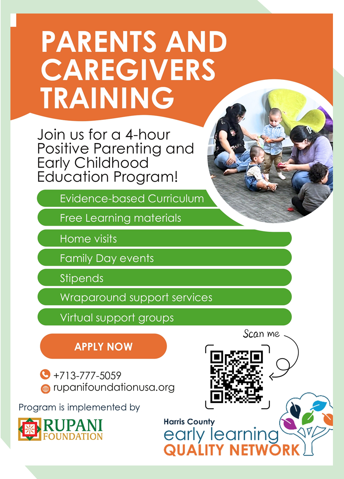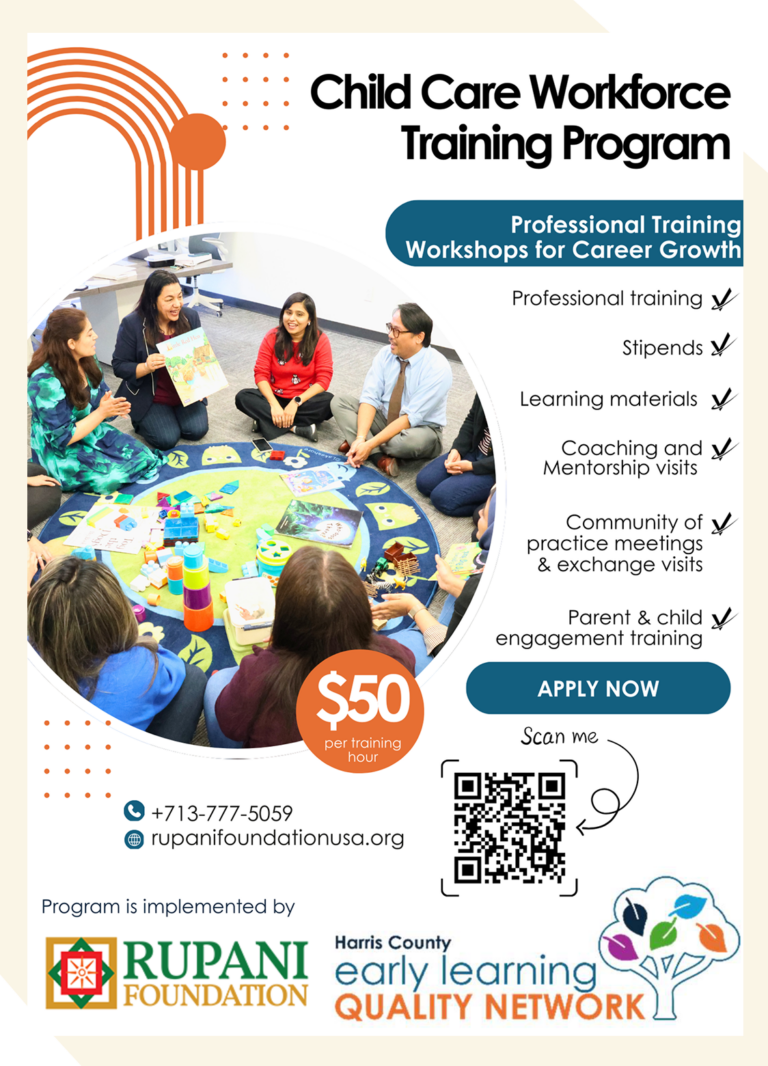 Rupani Foundation partnered with CHILDREN AT RISK to provide and support an incentivized, high-quality child care workforce training and coaching program in Harris County. This initiative also extends its services to offer specialized, incentivized training for non-professional caregivers on essential topics in early childhood care and development. The program aims to: